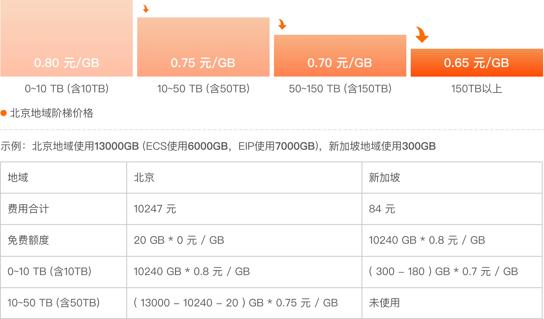 CDT 赠送200 GB/月公网流量,其中20 GB/月可用于全球地域(含中国内地),180 GB/月仅限非中国内地地域使用